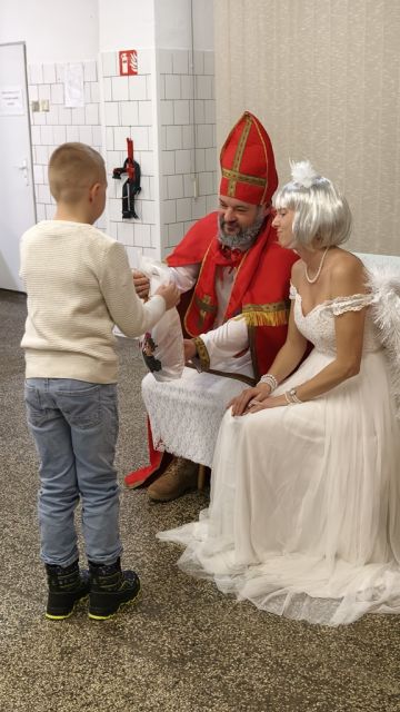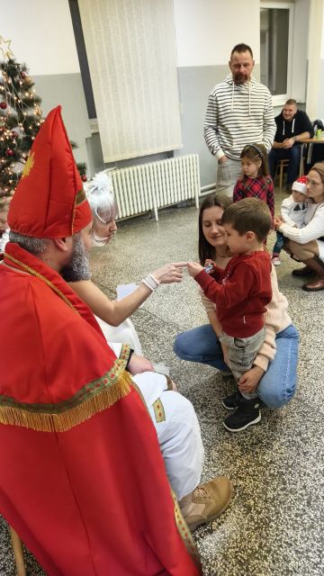 V dopoludňajších hodinách sa vydal Mikuláš stvárnený nadporučíkom Jánom Lehockým, anjel - Júlia Petrišáková a čert - rotmajster Branislav Bogár v doprovode veliteľa práporu podplukovníka Martina Doležaja do Centra pre deti a rodiny Levice, kde boli srdečne privítaní pani riaditeľkou. Deti si za pomoci vychovávateliek pripravili bohatý program plný spevu, tanca a recitovania. Nechýbalo ani chutné občerstvenie či domáci vianočný punč. Odmenou za ich usilovnú prípravu boli balíčky plné dobrôt z ktorých mali radosť malí aj veľkí. S úsmevom na perách a dobrým pocitom odchádzali naši príslušníci za stáleho mávania detí aj vychovávateliek.